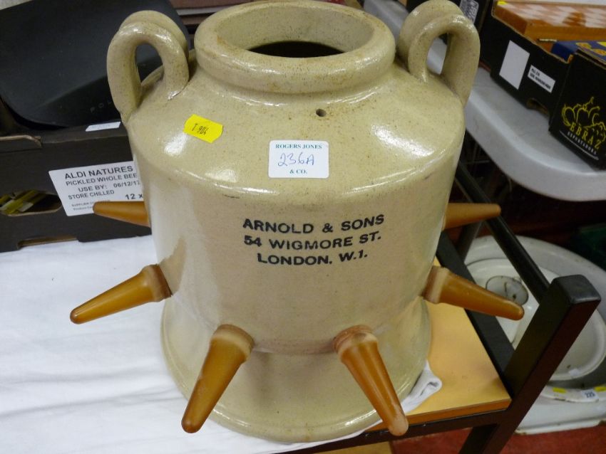 Vintage stoneware animal feeder by Arnold & Sons, London with teats intact