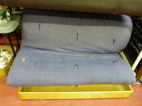 Modern pine and upholstered couch/bed with under storage tray