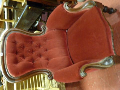 Victorian mahogany spoonback armchair in burgundy buttoned back upholstery