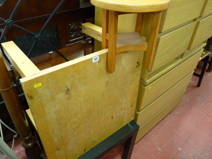 Two square topped modern coffee tables and a circular topped stool