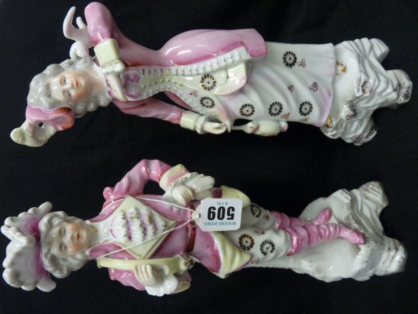 Pair of German porcelain figures of a well dressed gentleman and lady