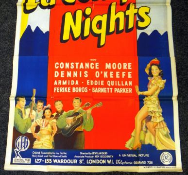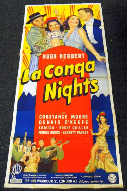 LA CONGA NIGHTS original cinema poster from 1940, poster is folded and in three sections, wear around fold lines, 220 x 100cms (six-sheet)