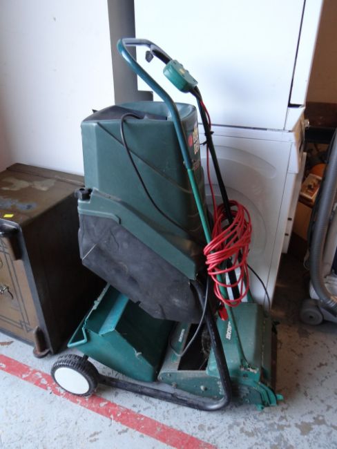 A Black & Decker electric garden shredder together with a Qualcast lawn mower