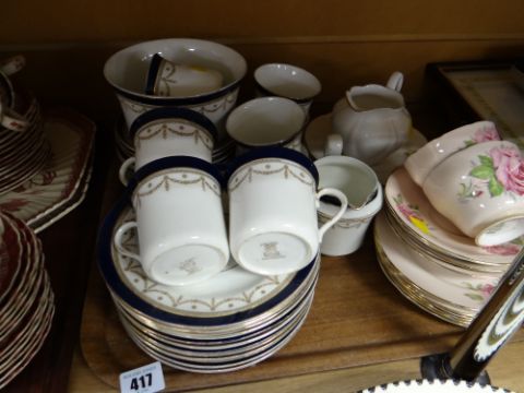 Vintage Elite Staffordshire blue & gold teaset together with a small parcel of Aynsley cups, saucers & side plates together with Royal Albert 'Coronet'