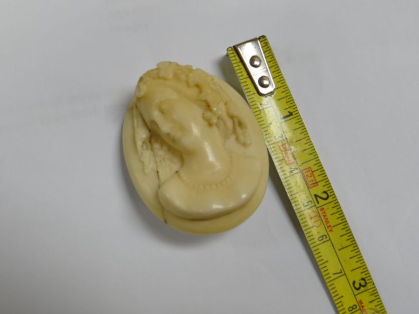 A nineteenth century (possibly French) carved ivory cameo brooch (damage)condition report:Top to bottom 5cm’sSide to side 3.5cm’s It has been damaged and has been repaired