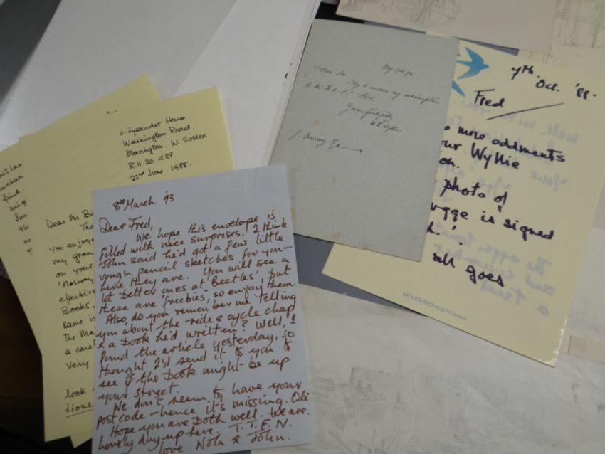 Folder of original drawings & preliminary sketches of ships by W L WYLLIE RA together with etchings & photographs etcCondition report:There are roughly six small pencil sketches, accompanying letters and a few other pictures which look like magazine covers or pull-outs.