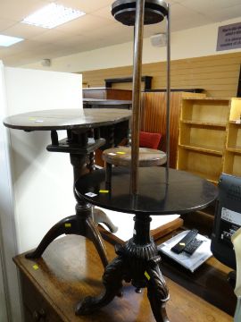An antique oak tripod table together with another similar side table & smoker's companion
