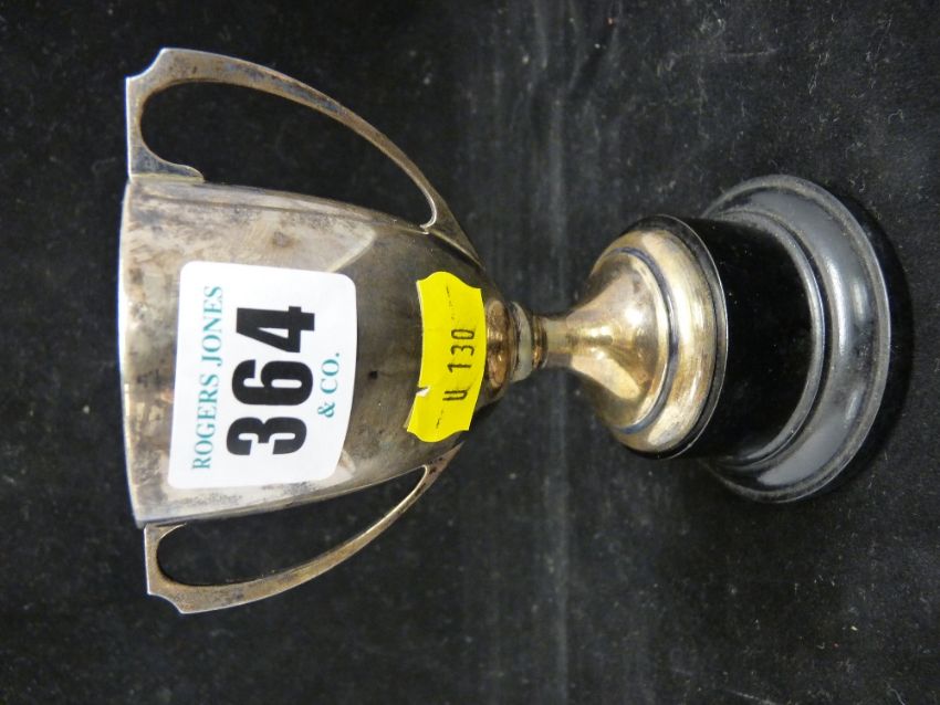 Small silver trophy cup on stand