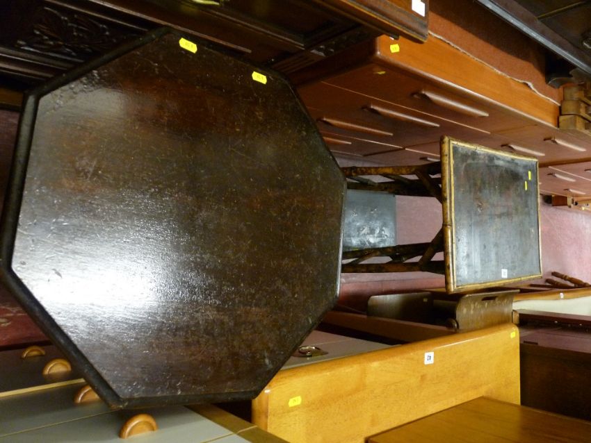 Bamboo two tier occasional table and another hexagonal