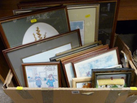 Box of mixed paintings and prints etc