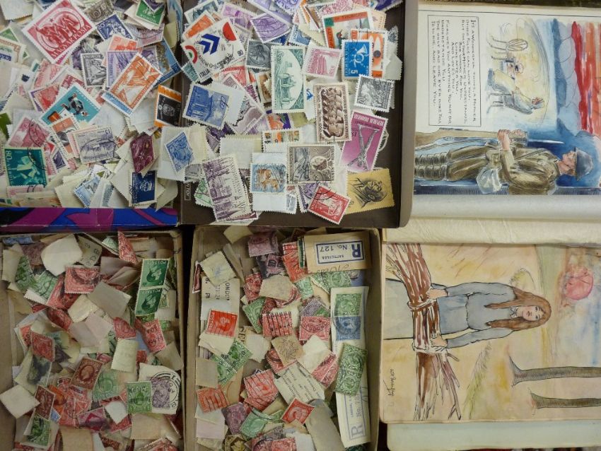 World stamps - a good unsorted quantity, mostly with cancellations and an early 20th Century sketch book