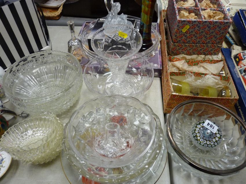 Millefiori patterned glass paperweight and large quantity of other glassware