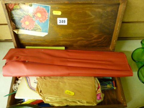 Selection of vintage sewing needles and associated ware in a lidded wooden box
