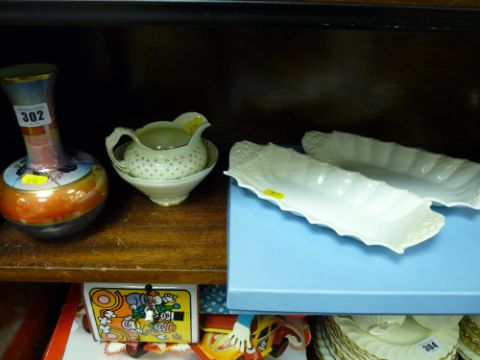 Crown Ducal lustrous onion vase, china jug and basin, two Aynsley dishes and a boxed Wedgwood plate