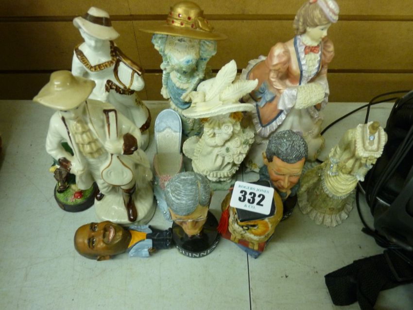 Two Guinness figures of well known sports commentators, a selection of lady figurines etc