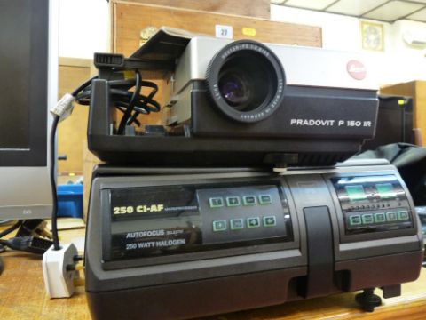 Leica Pradovit P150 IR magazine slide projector and an excellent Braun 250 C1-AF microprocessor slide magazine together with handmade wooden carry boxex E/T