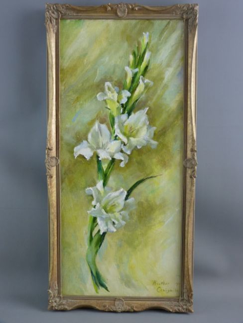 HEATHER CRAIGMILE oil on canvas - still life, study of lilies, 54 x 23.5 cms