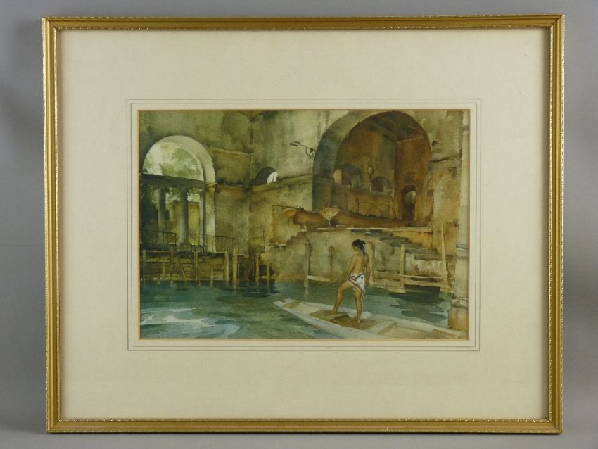 WILLIAM RUSSELL FLINT coloured print - semi-nude figure in a boathouse, 23.5 x 34 cms