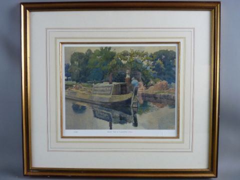 CHARLES FREDERICK TUNNICLIFFE limited edition (13/295) coloured print with Studio stamp and entitled 'Narrow Boat on Macclesfield Canal', 23 x 29 cms