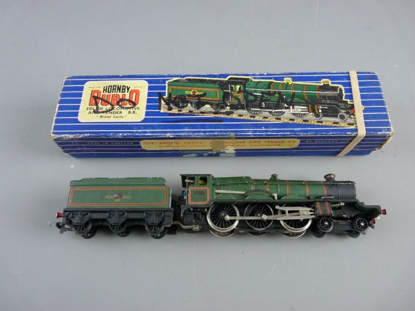 MODEL RAILWAY - Hornby Dublo two rail 2221, 'Cardiff Castle' in a three rail Bristol Castle box