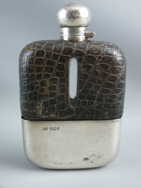 A GENT'S LARGE SILVER HIP FLASK with twist open globular lid and gilt lined removable drink's cup, Sheffield 1918 (glass cracked)