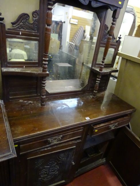 Carved front mirror back sideboard