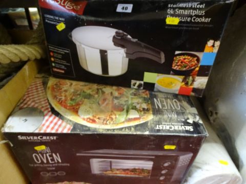 Silvercrest mini oven and a Prestige stainless steel pressure cooker, as new (boxed) E/T