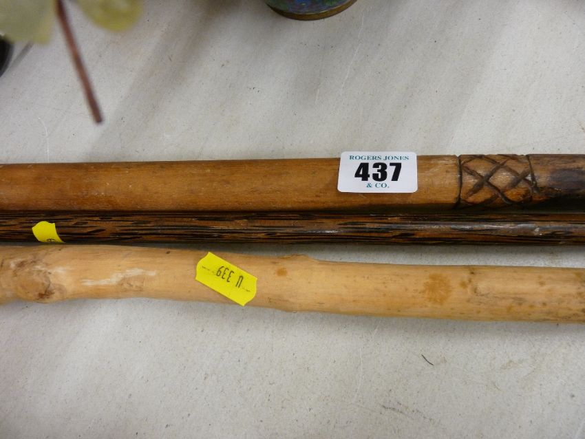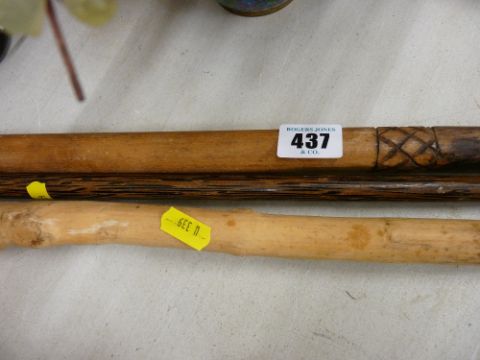 Three carved walking sticks