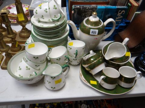 A Shelley 'Shamrock' patterned part-teaset together with a gilt & green Woods & Sons, Lincoln patterned part-teaset