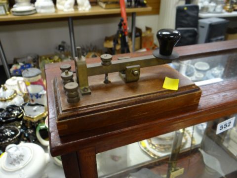 A cased chemist shop weighing scales together with a Morse code communicator