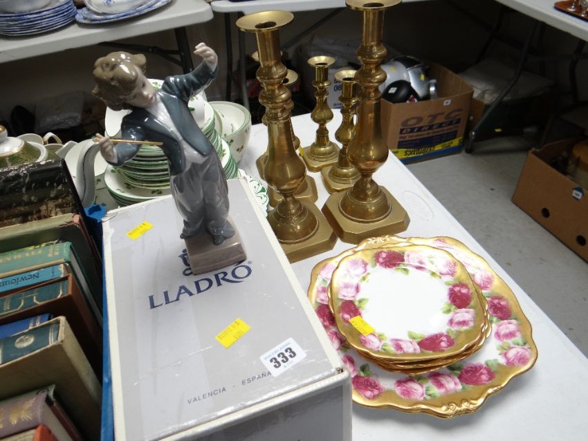 A boxed Lladro of a boy together with a small parcel of Royal Albert 'American Roses' side plates & cake plates