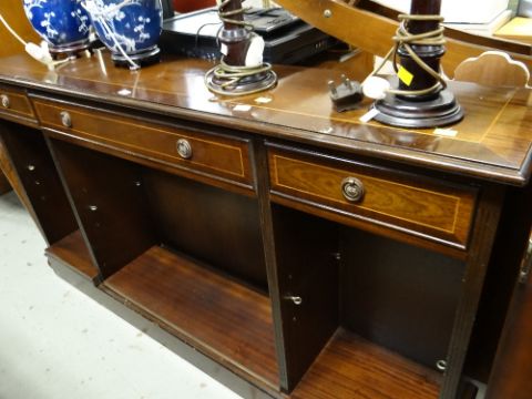 Reproduction mahogany narrow bookcase with three drawers together with a reproduction mahogany TV cabinet