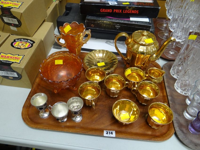 A Wade gilt coffee set, two items of carnival glass etc