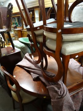 A reproduction mahogany extending dining table & six balloon backed upholstered matching dining chairs