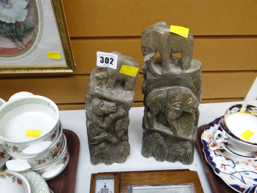 Two soapstone animal carvings