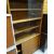 A vintage lightwood bookcase sliding glass door top above a sliding cupboard base