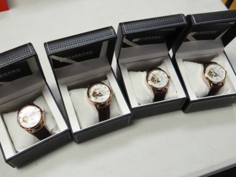 Four Barkers of Kensington automatic rose gent's wristwatches