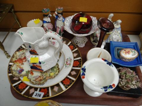 Royal Crown Derby Imari plate, Royal Crown Derby 'Honeysuckle' pill box, Caithness paperweight, Gaudy Welsh spill vase etc