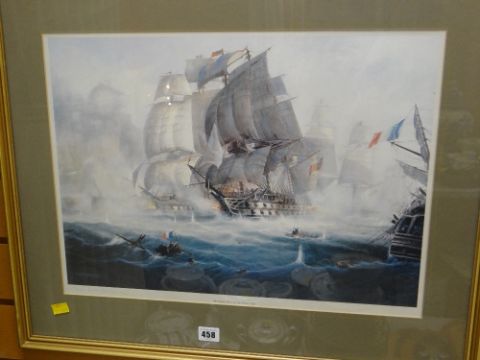 LAWSON WOOD print entitled 'Poker', 'A Straight Flush' together with a signed print of a naval battle entitled 'Glorious First of June Battle, 1794'