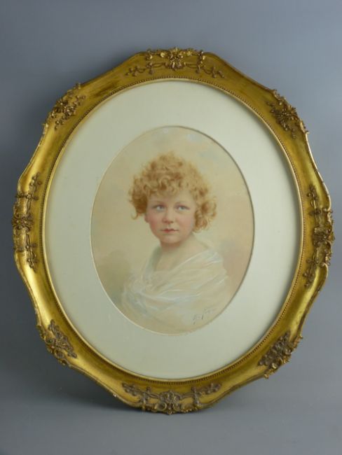 FOLEY watercolour - oval portrait of a young girl, dated 1923, signed bottom right, 36 x 28 cms