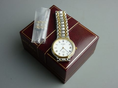 A CASED GENT'S OR LADY'S ROTARY QUARTZ CALENDAR WRISTWATCH