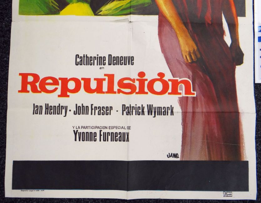 REPULSION directed by Roman Polanski, original Spanish cinema poster, 1965, folded, slight fold and edge wear, 101 x 70cms together with lobby card