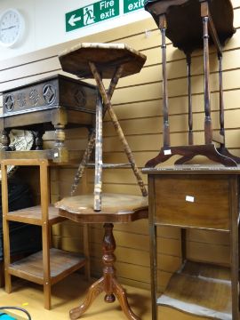 A parcel of furniture including carved box seat stool, bamboo table etc