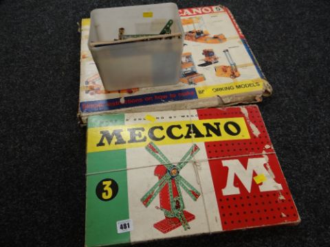 A vintage Meccano set no. 3 & 5 together with a parcel of loose Meccano