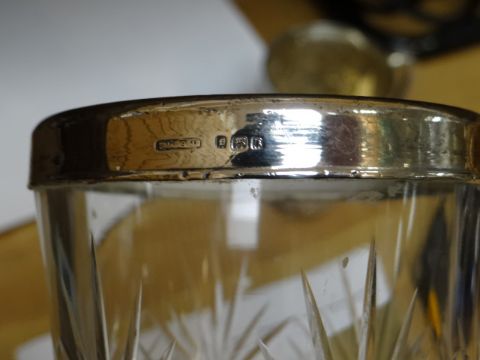A hallmarked silver embossed tankard together with a hallmarked silver rimmed glass vasecondition report:They both look good, the silver around the vase rim has a few dings otherwise all good, the tankard is just a bit dirty