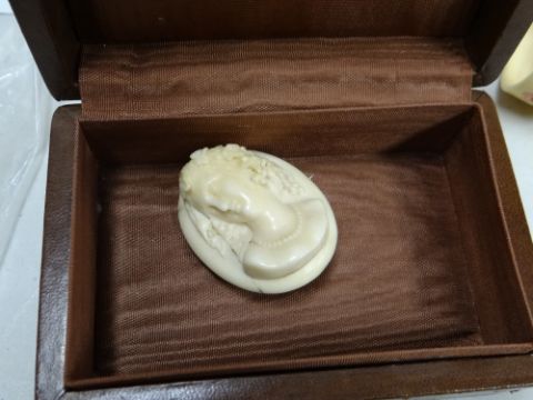 An ivory cameo & set of believed ivory napkin rings