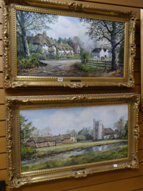 Two framed oils on canvas by DENYS GARLE of English country scenes entitled 'Swan Green, Lindhurst' & 'Long Parish, Hampshire'