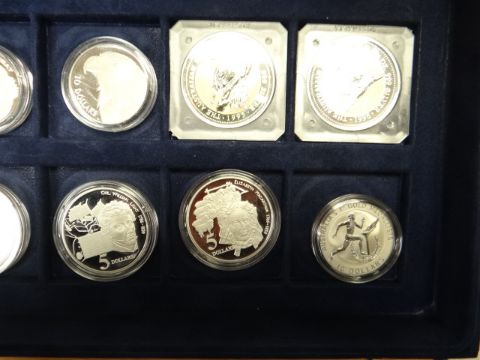 Three part-Mint silver coin collections, the official coins of Australia, silver fifty dollar coin Motor Sport Collection & fifty dollar silver Legendary Aircraft Collection