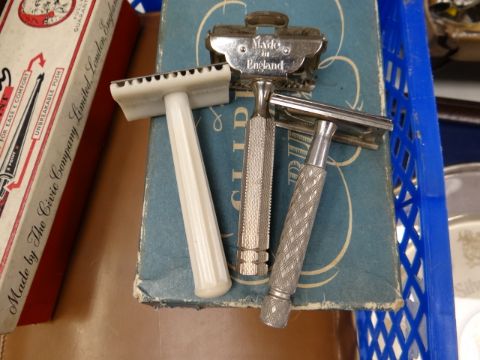 A parcel of vintage gents grooming items, shavers, hair clippers, travel shaving kit etc
