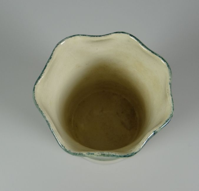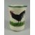 A RARE LLANELLY 'COCK & HEN' PATTERNED VASE having a crimped rim & with a painted single black hen & single black cock on a green grassy surface, 13cms high